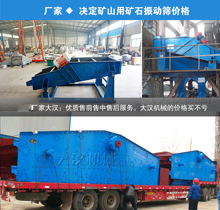 大漢機(jī)械生產(chǎn)的礦山用礦石振動(dòng)篩應(yīng)用廣泛,不同的型號(hào)、質(zhì)量、廠家的礦用振動(dòng)篩價(jià)格都不一樣,那么影響礦山用礦石礦用振動(dòng)篩的價(jià)格因素有哪些呢?