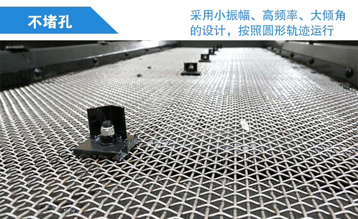 圓振動篩采用小振幅、高頻率、大傾角的設計,按照圓形軌跡運行,篩面上的礦石不斷翻轉和松散著向前前行,小顆粒的鐵礦石有更多機會透過物料層并完成篩分,同時圓形軌跡還可使卡在篩孔中的物料跳躍出來,避免了篩孔堵塞,提升了整臺設備的篩分效率。